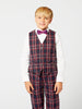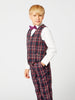 No boy’s wardrobe is complete without a stylish waistcoat. This one in navy blue, red and grey checks is stunning and will make your little man look like a gentleman. Pair it over a white shirt and wear matching trousers and a navy blue bowtie for an elegant look.