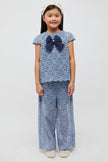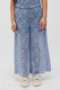 These blue culottes are unique and stylish. They've got a beautiful lace pattern all over that enhances their look. When paired with a solid white top, they will give your girl a chic look.