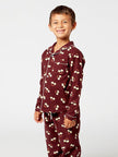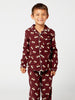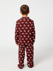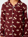Sleepwear should be comfortable and this deep brown set will feel like a warm hug to your child all night long. With a button down shirt that features a front pocket and a neat white piping, this night suit set is a must have. It also has cute little omelet printed as faces all over it and will become your son’s favorite.