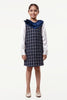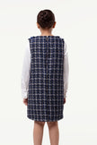 Introducing the Enchanted Houndstooth Dress from our exquisite Autumn-Winter collection, "Houndstooth Garden." Immerse your little one in a world of timeless elegance and youthful charm with this navy blue V-neck dress. Inspired by the beauty of contrasts, the Houndstooth Garden Dress encapsulates the essence of tradition and playfulness. The classic houndstooth motif takes center stage, infusing the dress with a touch of refined sophistication. At OneFriday, every piece we create is a labor of love, and the Enchanted Houndstooth Garden Dress is no exception. The attention to detail is evident in every stitch, ensuring a garment that's as comfortable as it is stylish. The V-neck design adds a contemporary twist, giving your little one a look that's both classic and chic.