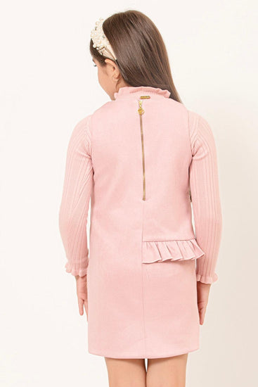 Introducing the Enchanting Rose Blush Dress, a delightful creation from OneFriday's Autumn-Winter collection, "Houndstooth Garden." This dress is a harmonious blend of elegance and playfulness, designed to capture hearts and imaginations. The Dress embodies the charm of a garden in full bloom. The solid pink hue is a canvas that sets the stage for a whimsical journey, while the strategically placed ruffles create a sense of movement and grace. The round neck and full sleeves exude timeless elegance, making it a versatile choice for both formal occasions and everyday adventures. The rose appliqué graces the dress, adding a touch of sophistication and femininity. It's a delicate detail that complements the dress's overall design, turning it into a wearable work of art.