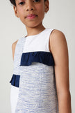 Girls Blue Regular Fit Sleeveless Color Blocking Top By One Friday