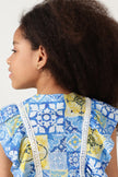 Playful prints meet thoughtful details in this multicolor sleeveless top. Made from printed cotton, it showcases a vibrant geometric pattern and features a cute tie knot at the front. Off-white tape along the princess seams adds a touch of contrast and polish. Pair it with shorts or skirts—this one's made to stand out.