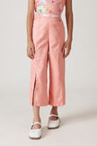 Elevate your child’s wardrobe with the Girls Peach Flared Solid Trouser by One Friday. Crafted from soft poly twill, these trousers are designed for comfort throughout the day and everyday elegance. The flared cut provides easy movement, while a front slit adds a stylish twist. A delicate butterfly metal brooch at the waist brings a playful accent. Pair them with a tucked-in blouse or casual tee for truly effortlessly versatile outfits that work for both special occasions and daily adventures.