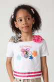 Stylish and comfortable, the Girls White Regular Fit Sleeveless Solid Top by One Friday is ideal for your little angel. Crafted from cotton jersey, it has oh-so cute contrast bows and a blossom print in the front.