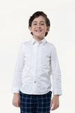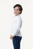 Elevate your young gentleman's style quotient with our Ivory Button-Down Shirt, a distinguished piece from OneFriday's Autumn-Winter Collection: Varsity Chic. This off-white shirt for boys effortlessly combines timeless sophistication with the comfort and versatility every parent desires. The Shirt exudes classic elegance, making it a wardrobe essential for young gentlemen. It's a versatile piece that suits formal occasions as well as casual outings. This shirt is impeccably tailored to ensure a comfortable fit and a polished appearance. Made from premium cotton, this shirt offers pure comfort throughout the day. It's gentle on your child's skin, making it perfect for extended wear.