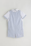 Boys Aqua Color Half Sleeve Clothing Set By One Friday Children’s Wear” Aqua is associated with calmness and moderation and so does this apparel set invoke. The set's simple style is expanded further by the striped fabric and pocket embroidery.