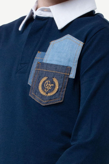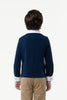Check out this navy blue tshirt for kids boys ideal to wear in day parties. This polo long sleeved shirt with white collar on elbow carries a unique look. It will go perfect with black or blue denim trouser to make your kid the showstopper of the day.