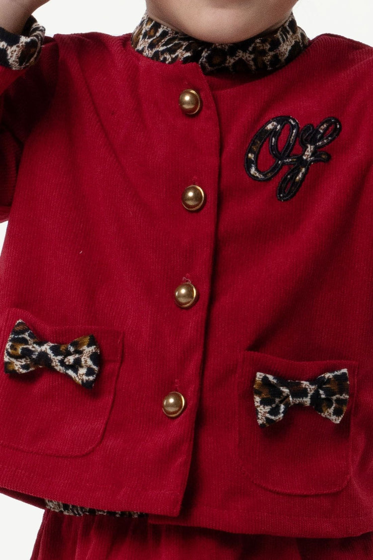 One Friday Kids Girl Maroon Solid Jacket Skirt Set for Winters