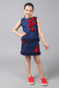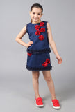 Expertly crafted for fashion-forward girls, this navy blue skirt features an elasticated waistband for a comfortable fit for all-day wear. The contrasting red embellished flowers add a playful touch to the classic design. Perfect for any occasion, this skirt combines style and comfort for your little girl’s wardrobe.