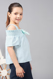 Kids Girls Pastel Stripe Ruffle Shoulder Top