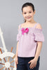 One Friday Kids Girls Pink Cotton Stripe Ruffle Sleeves Smocked Top
