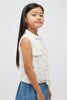 This sleevless off white shirt ties in a knot and gives it a relaxed chic look. Pair it with denim or shorts and have fun creating different looks for your little one.