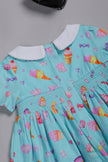 Introduce your little girl to effortless style and comfort with the One Friday Baby Girls Aqua Peter Pan Collar Dress. Made from a beautiful aqua fabric with a sweet pink candy print, this dress also features a contrasting white peter pan collar and a smocked waistline with a pink satin bow. Perfect for any occasion, it also has a convenient snap button closing in the back.