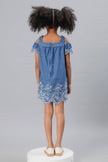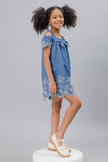 One Friday Girls Blue Cold-Shoulder Embroidered Dress