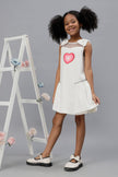 One Friday Girls Bow & Heart White Dress with Embellishment