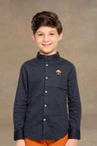 One Friday Kids Boys Navy Blue Mandarin Collared Shirt