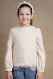 One Friday Kids Girls Beige Laced Full Sleeves Top