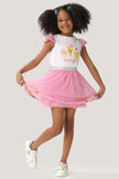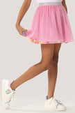 The One Friday Kids Girls Pink Netted Skirt is a stylish addition to your child's wardrobe. The silver elastic waistband adds a touch of shine, while the multi-layered net provides extra bounce. With fabric cotton balls filled inside the upper net, this skirt is both comfortable and fashionable. Elevate their look with this must-have piece.