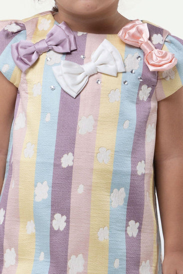 One Friday Varsity Chic Multicolored Stripes and Blooms Dress for Girls