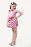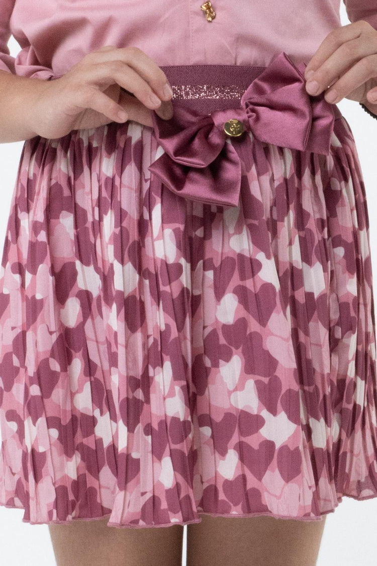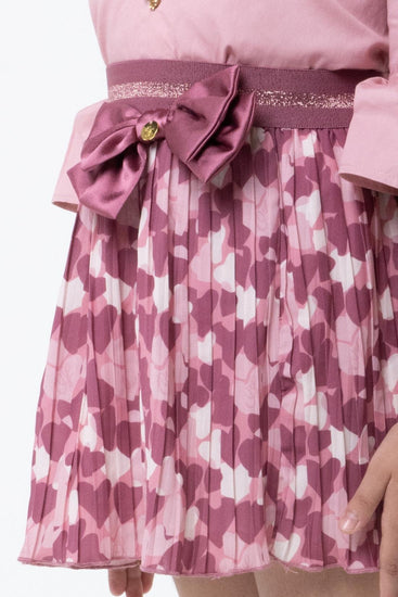 One Friday Varsity Chic Red Heart Printed Skirt with Bow for Girls