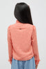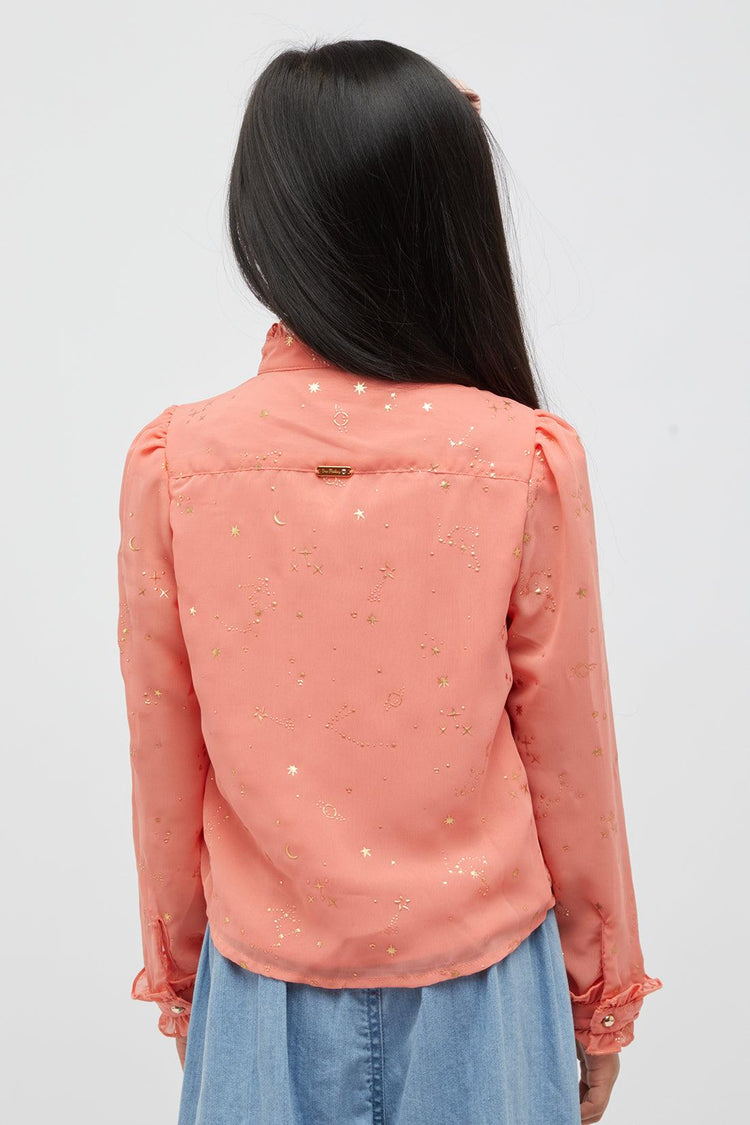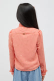 This peach shirt will make your girl instantly party ready. Its got heavy ruffles on its front collar with sparkle strewn across it.