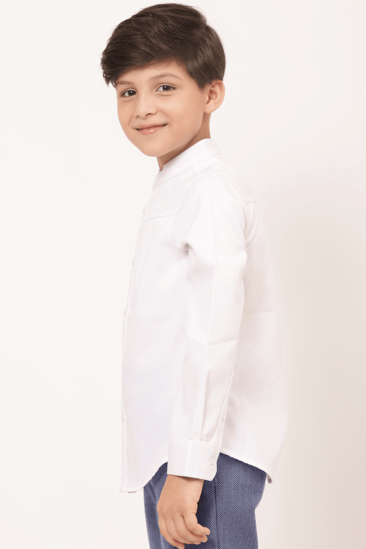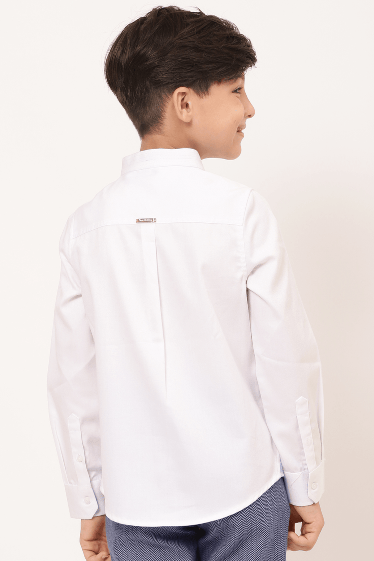 Elevate your young champ's style quotient with the Pure White Classic Shirt from OneFriday's Autumn-Winter Collection: Varsity Chic. The Pure White Shirt for boys is a statement piece reflecting timeless elegance. Its pristine white hue embodies sophistication and complements any occasion. This shirt is crafted with precision to ensure an impeccable fit and a lasting impression. Made from premium cotton, this shirt offers unmatched comfort. It's designed to allow your child to move freely while maintaining a polished look.