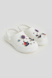 Unisex White Nautical Clogs with 3D Marine Charms & Strap | One Friday